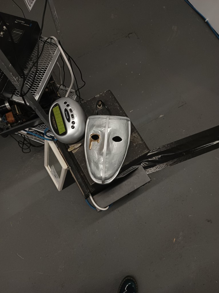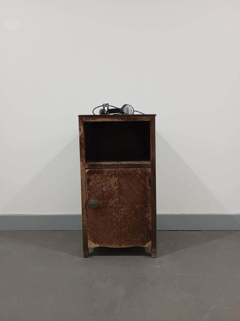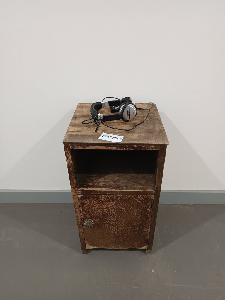 Sculpture with audio track through headphones (8 min approx), 30cmx70cmx30cm (approx)