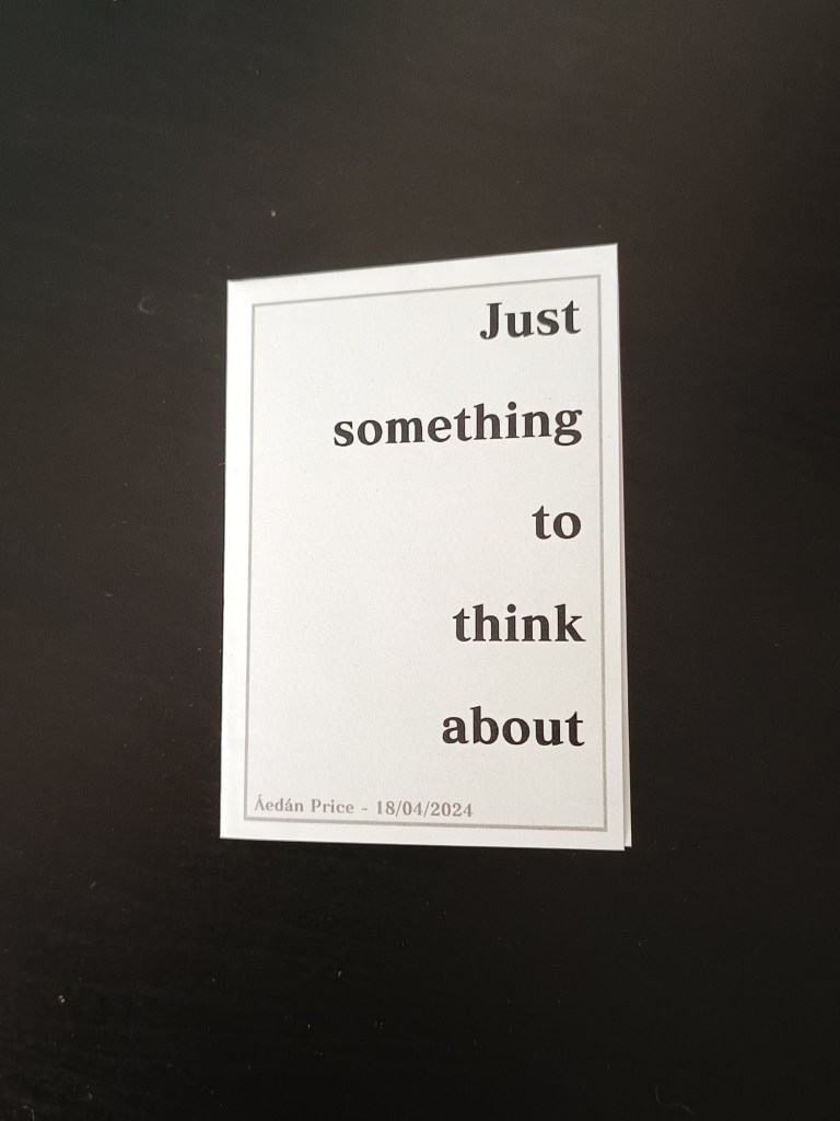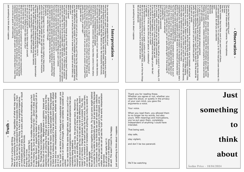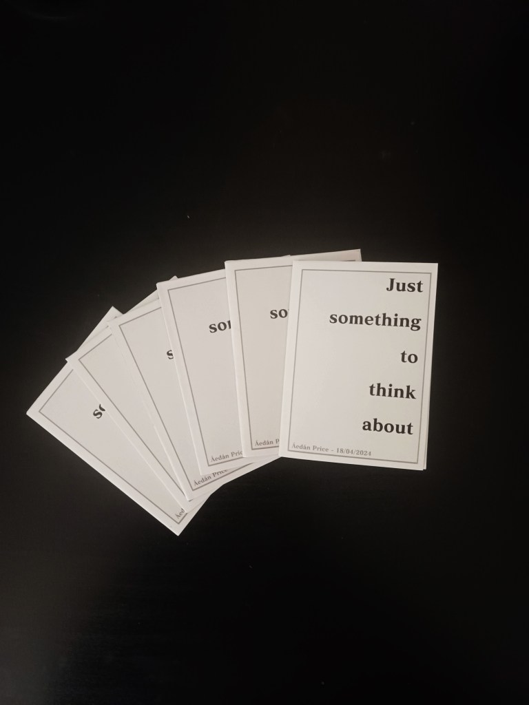 Zine printed on A4 Paper, 7.5cmx10.5cm approx